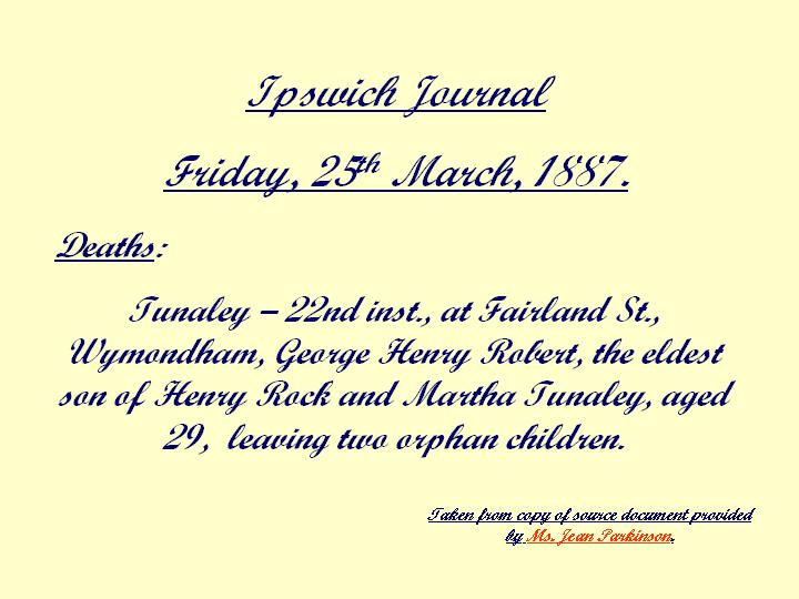 d. 1887, aged 29, Forehoe, Norfolk.