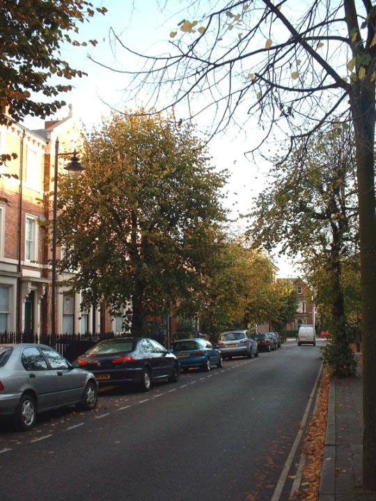 Below: Hartington St., as it is today. Click on picture to enlarge. No. 9 is just beyond tree on left of picture.