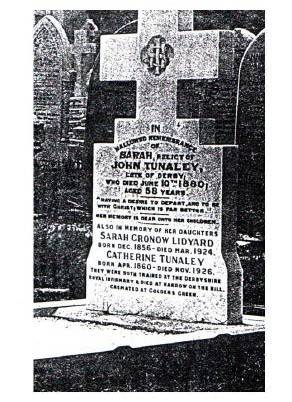 Sarah Tunaley died June 10th. 1880, aged 58 yeasrs. Sarah buried Uttoxeter New Road Cemetery, Derby.