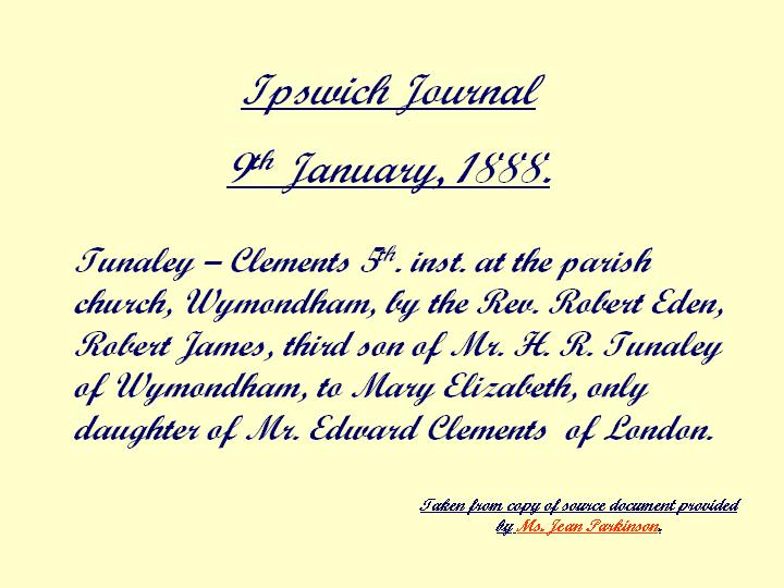 1881 Census: R.J. Tunaley living at Market St., Wymondham.