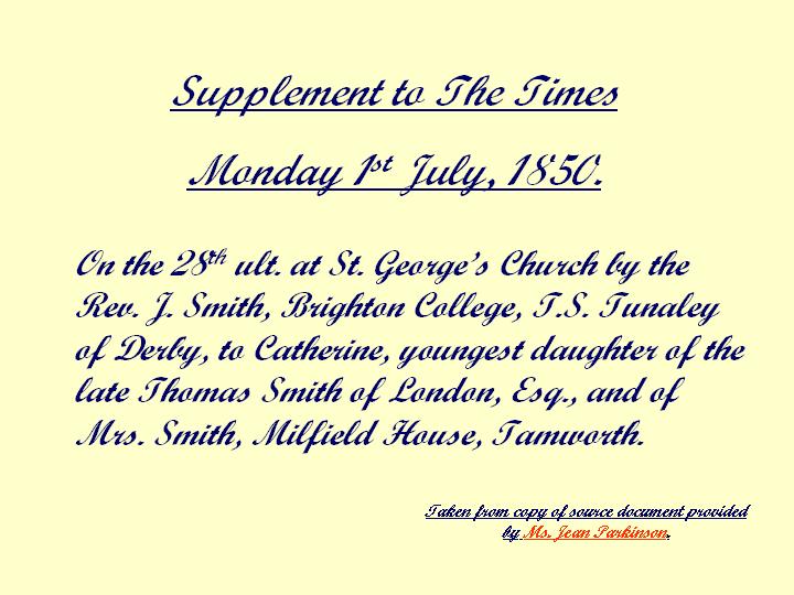 What is also of interest is that Sarah Tunaley subsequently married into the Cox-Soresby family in 1838. See Cox-Soresby-Tunaley Tree.